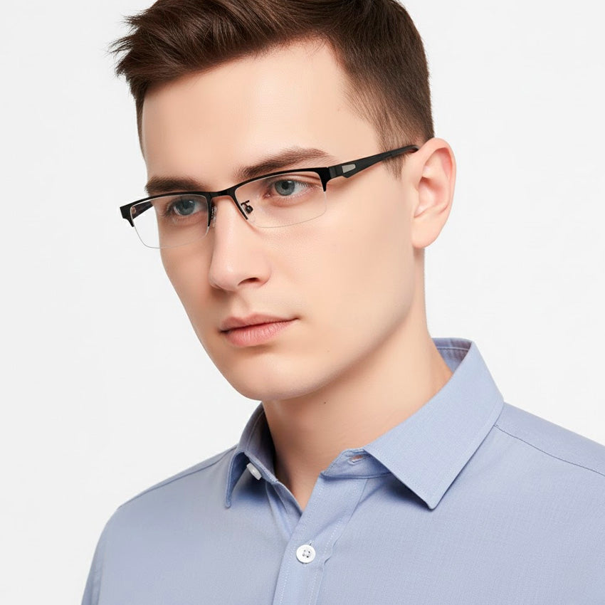 The Clyr™ Multi-focal Photochromic Glasses are designed with precision and comfort in mind. They feature a half-frame metal structure with lightweight durability, weighing only 23.7 g. The lenses are made from AC material, offering clear vision and scratch resistance.